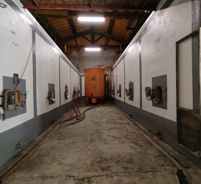 • 16 cuves béton avec revêtement intérieur en résine époxy (capacités de 147 à 290 hectolitres) pour une capacité totale d’environ 3600 hectolitres.