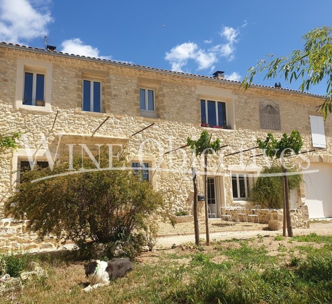 La maison principale est construite en pierre traditionnelle et offre 475m² de surface habitable. Elle est orientée au sud et donne sur un petit jardin et sur la cour formée par les bâtiments de production.