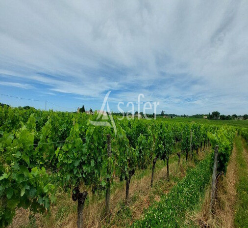 Foncier :Le vignoble est conduit en agriculture conventionnelle. 5.5 hectares de vignes AOC COTES DE CASTILLON répartis sur deu sites : 4.5 ha d'un seul tenant (à l'arrière des bâtiments) et 1 ha à 1.5 km de ceux-ci.